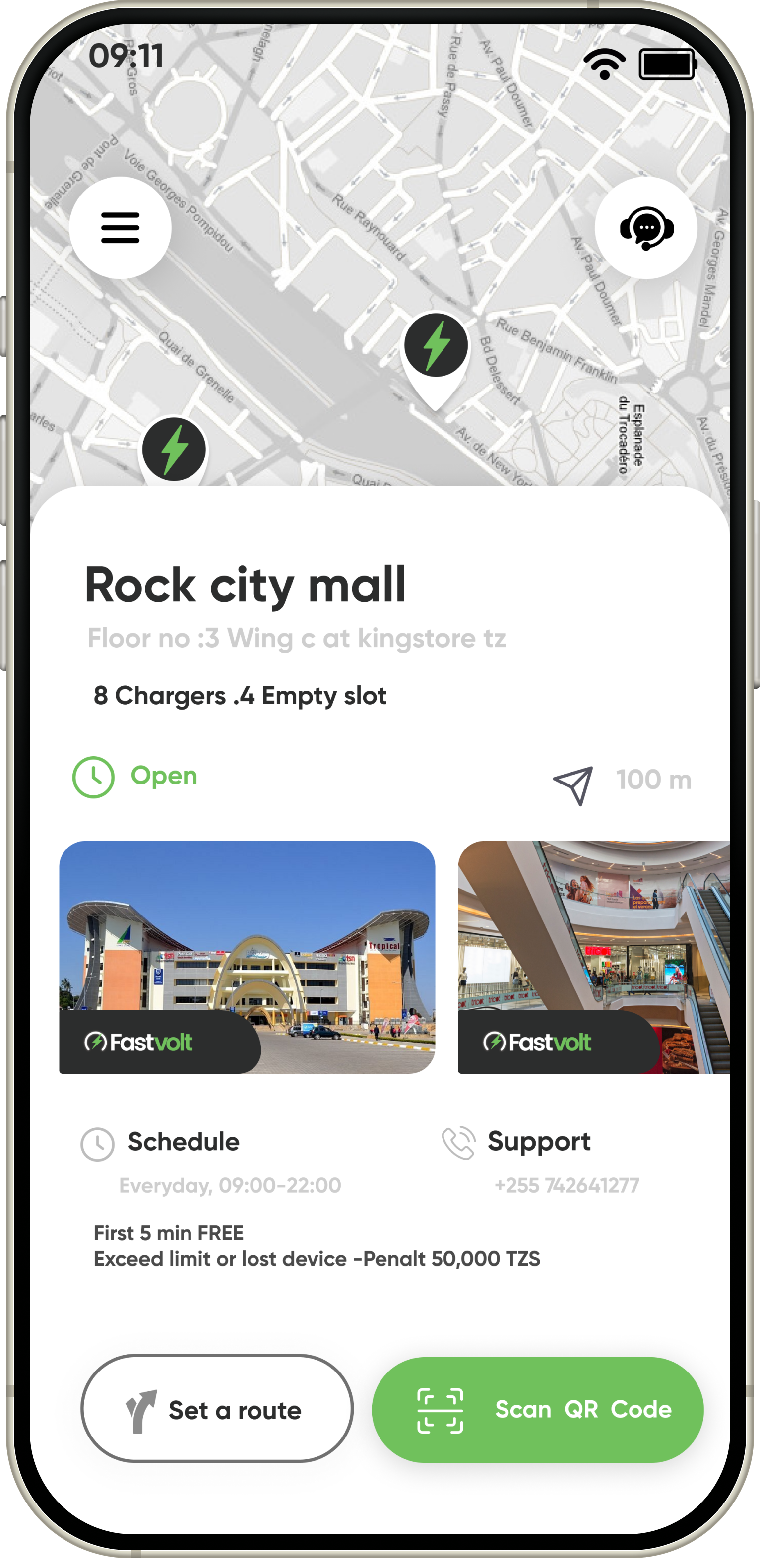 Payments are processed securely through the FastVolt app, which accepts various payment methods, including credit/debit cards and mobile payment options.